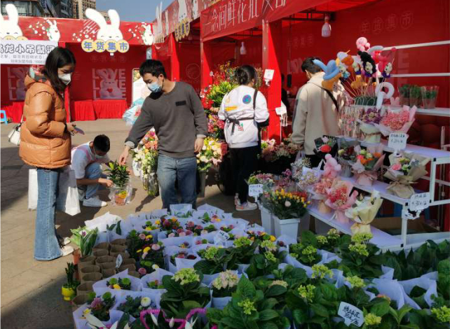 近日,在兴义市梦乐城的年货街,市民正在选购鲜花。年关将近,市民在购买各类喜庆用品的同时,鲜花也成为大家装点家居的首选。据介绍,随着鲜花培育技术的不断进步,现在的鲜花不论品种更多,保存时间更持久。(黔西南日报通讯员 张卓 洪霞 沙耀文 摄影报道)