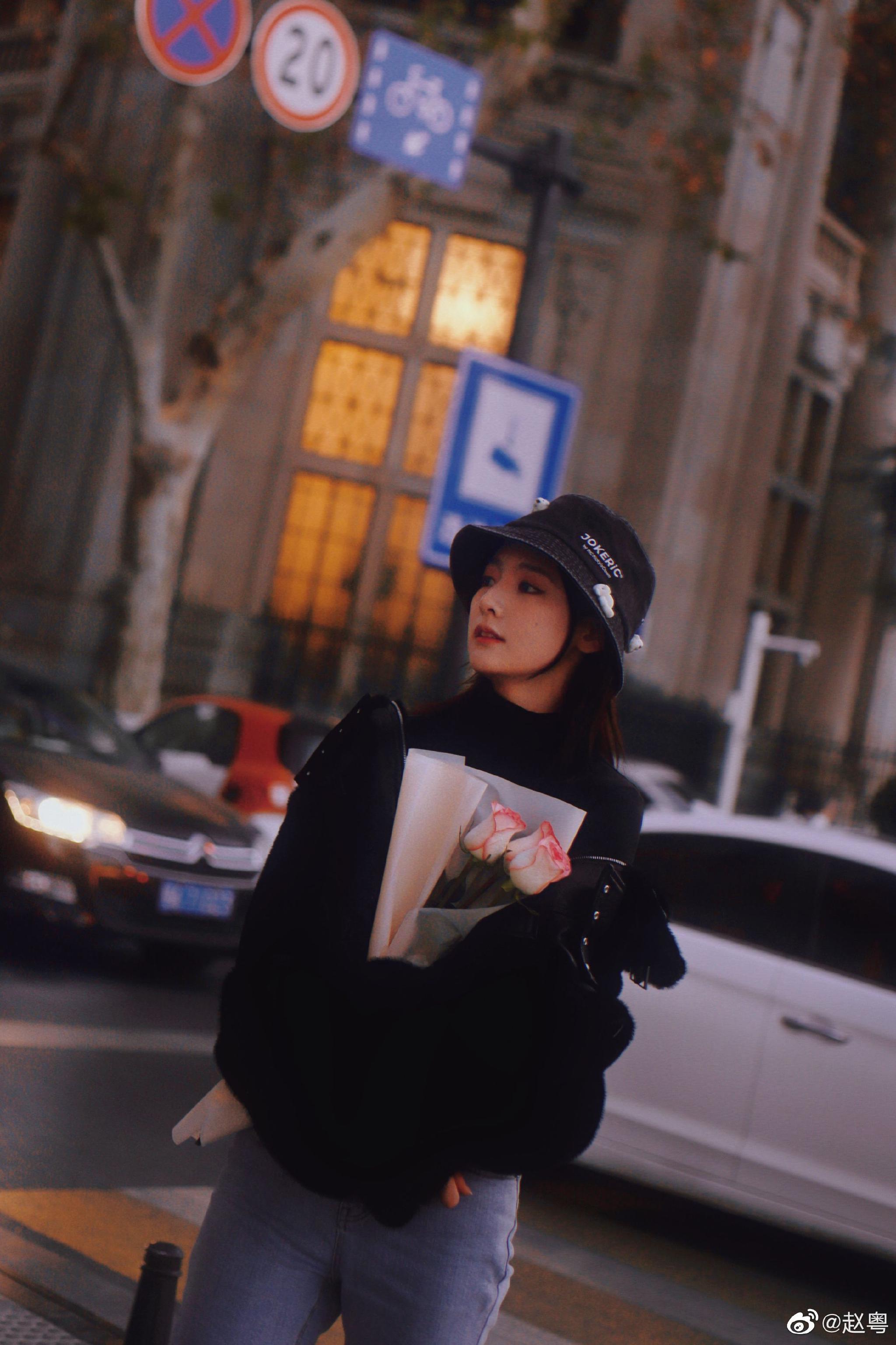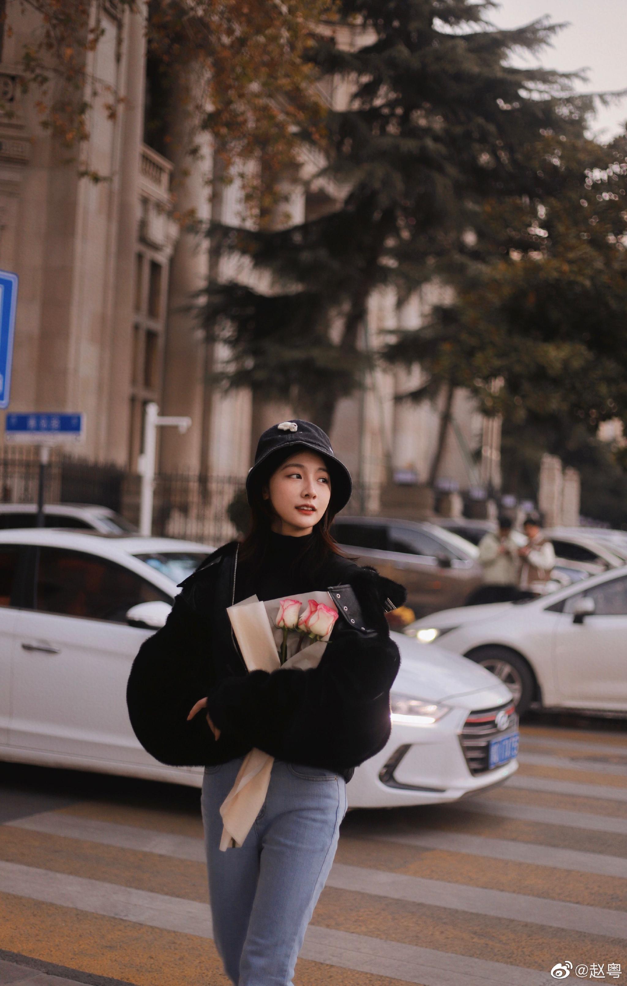 赵粤最新街头氛围感随拍,手捧鲜花漫步在街边,漂亮粤粤趁假期多玩一玩呀