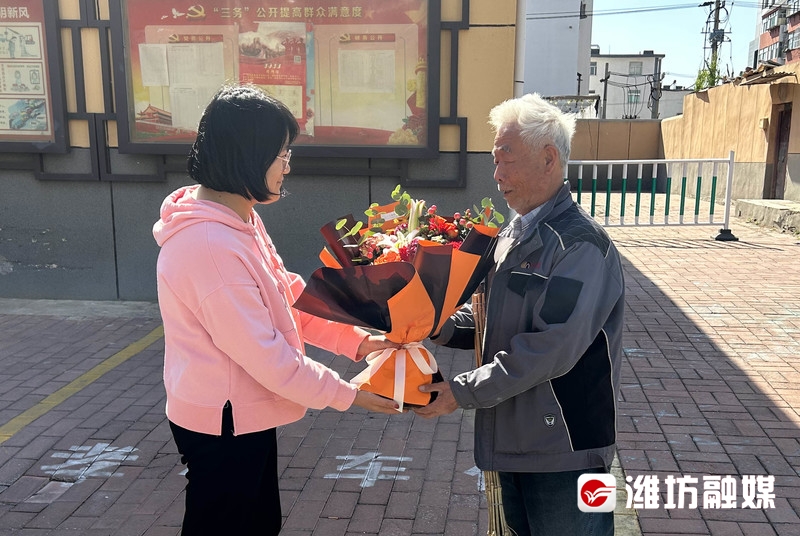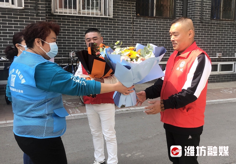 潍坊日报社潍坊融媒讯 4月29日,潍城区城关街道翠竹园社区开展了“五一我在岗 鲜花送给最美劳动者”活动,社区工作人员将一束束鲜花送给了节日期间坚守在工作岗位的小区物业工作人员、环卫工人、社区志愿者等劳动者群体,向他们表达了节日的问候。