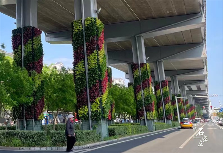 花墙绿化主要分布在裕华路体育大街桥、槐安路维明街、西二环中山路东北角、大石门、体育大街裕华路地道桥。