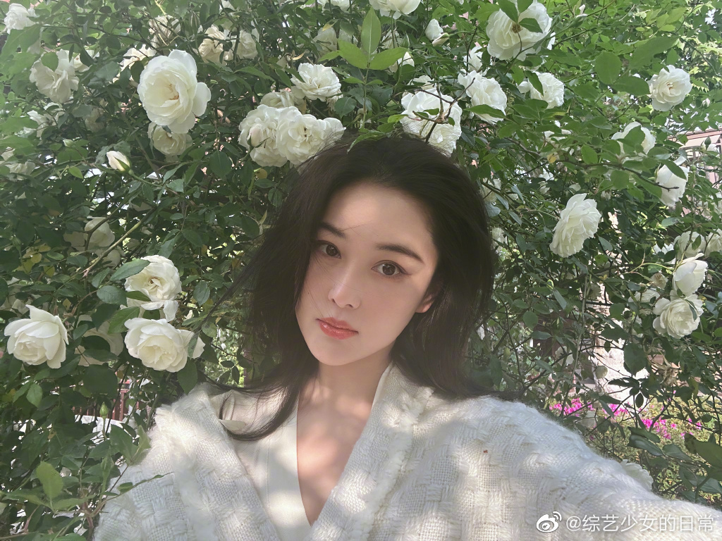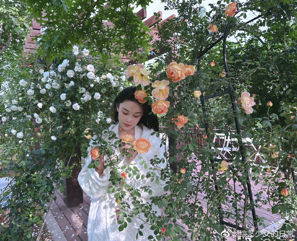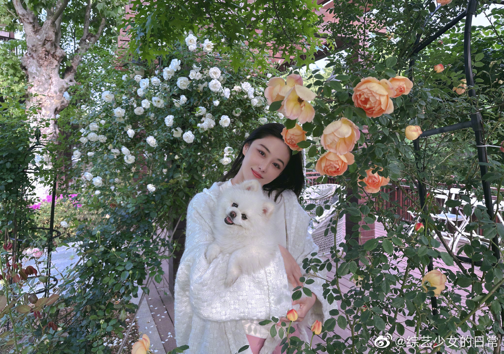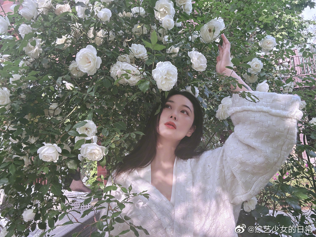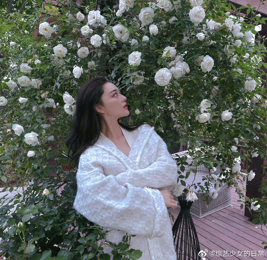 张馨予在自家花园晒出与鲜花的随怕,真的好美啊,人美花也美