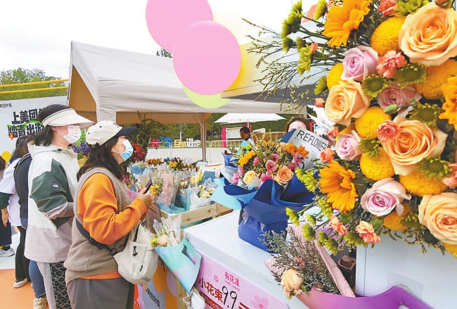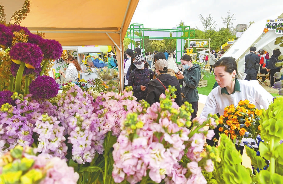 近日在北京朝阳公园举办的鲜花市集,吸引了众多市民前来打卡拍照和选购,尽情享受春日浪漫。本报记者董芳忠摄影报道