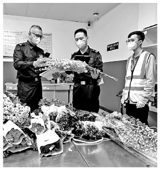 - 图为广州海关所属广州白云机场海关关员近日对进口鲜切花进行监管。杨帆 摄