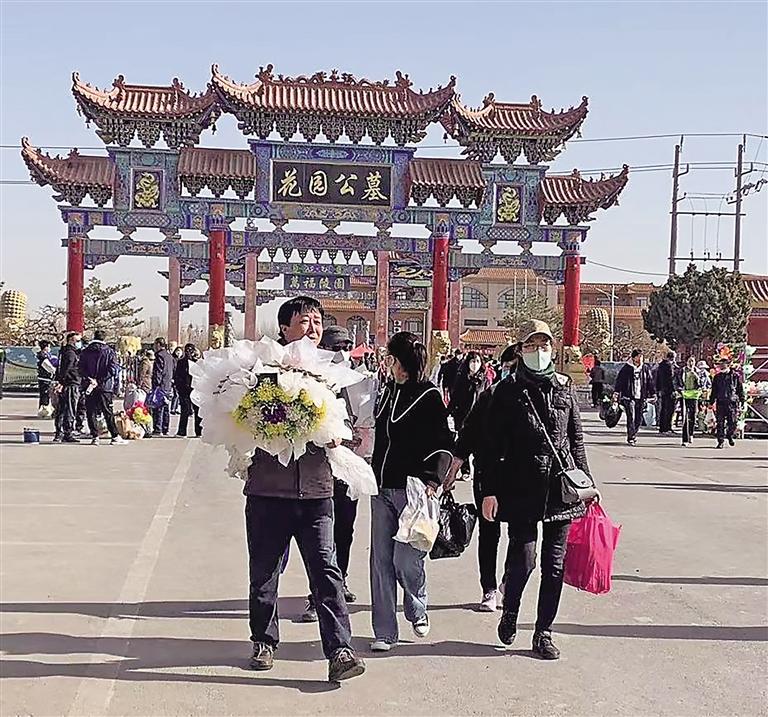 3月26日上午,市民带着鲜花前往花园公墓祭扫。