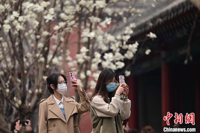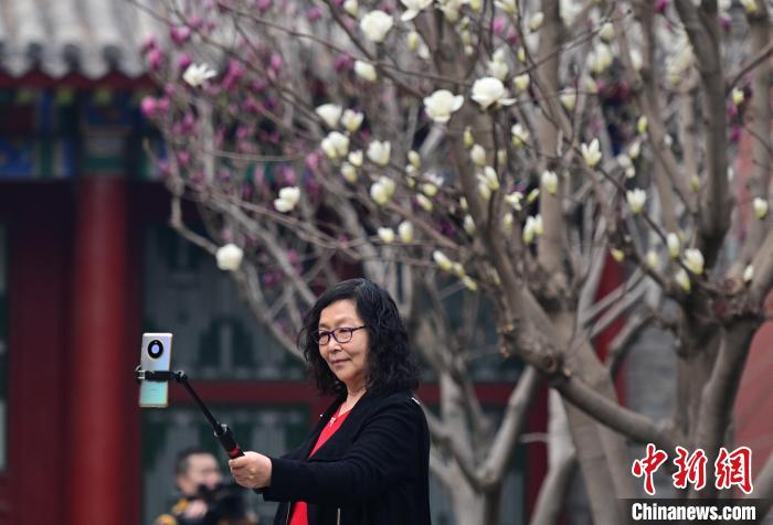 4月4日,沈阳故宫博物院内玉兰、映山红等鲜花绽放,盛开的花吸引不少游客前来观赏。
