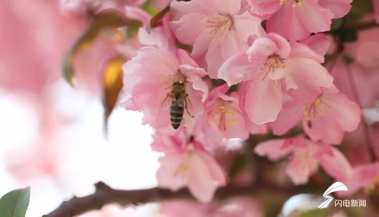朵朵鲜花争奇斗艳,浓浓春意令人陶醉。微风拂来,香气四溢。蜜蜂在花间飞舞,一幅幅优美、和谐的生态画卷扮靓了城市“颜值”。