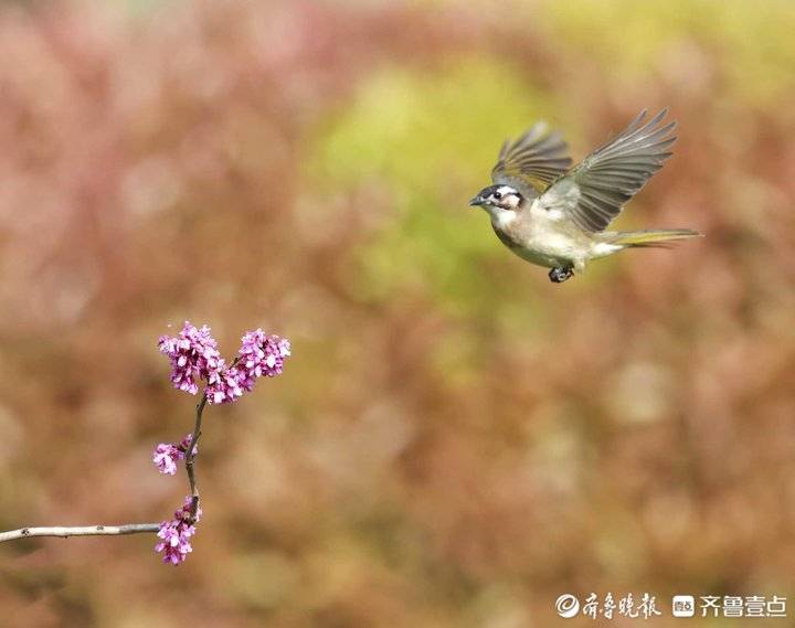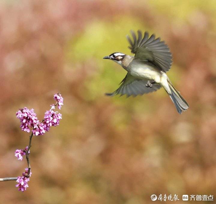 > 春天里的故事:白头鹎遇到美丽鲜花