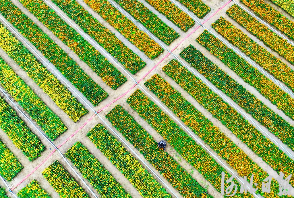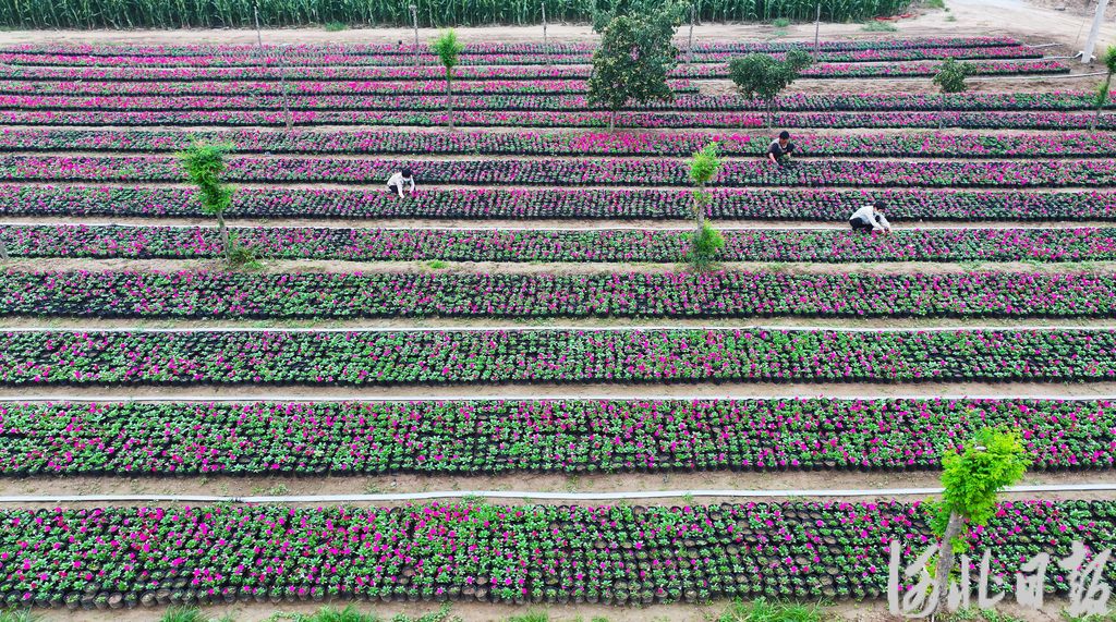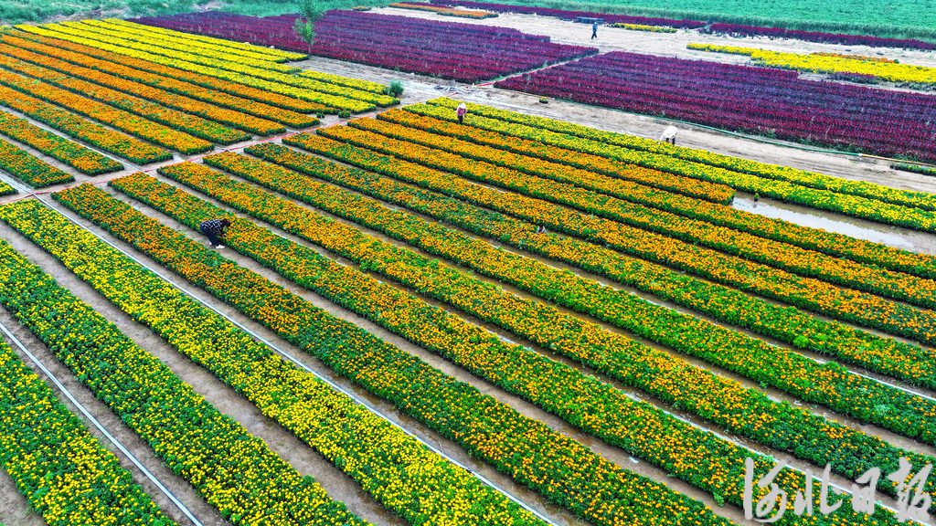 9月9日,花农在邢台市南和区和阳镇一家花卉种植基地管理花卉。