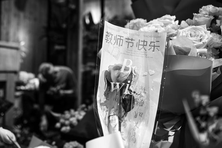 昨天,在市区月河历史街区,不少花店的店员正忙着包装教师节花束,来订花的顾客不少。